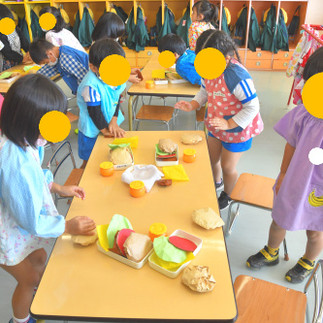 ハンバーガーを作っているクラス🍔💕まるで本物みたい❕上手に作れていました🌟