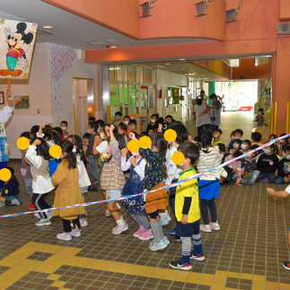 今日は年少クラス(うさぎ組、りす組、こあら組、あひる組)が