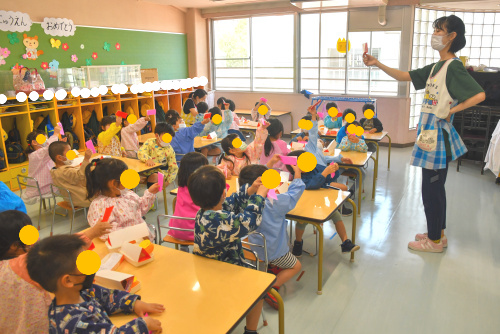 先生の「みんなできたかな?」の言葉かけに「はーい!」と元気にお返事出来ました!