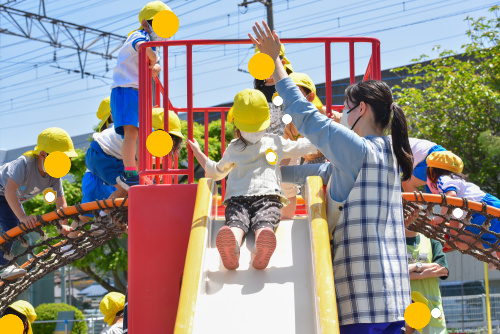 滑り台では先生のお手々の踏切がしまっちゃうよ💕