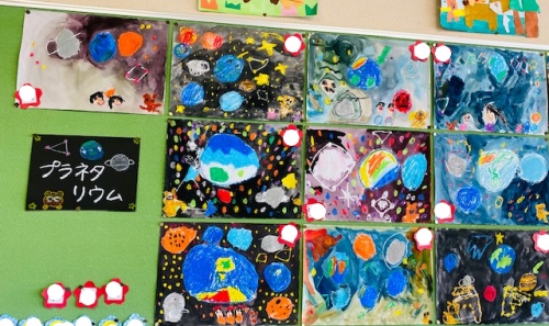 年長 ひまわり組に「プラネタリウム見学」の絵画が飾られていたので少しご紹介します😊