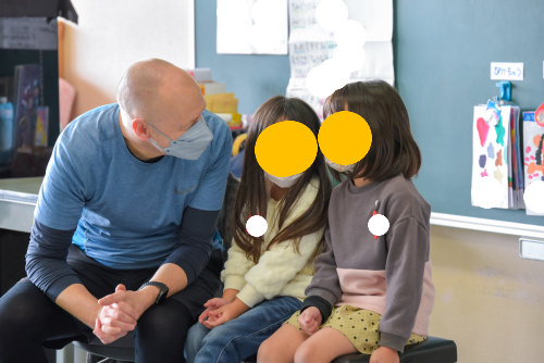 年長組の英会話教室の様子です(写真はひまわり組)🌻