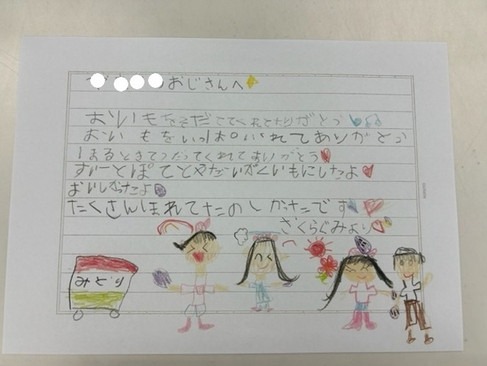 みんなのためにさつまいもを育ててくれた畑のおじさんに年長組のお友だちがお礼のお手紙を書きました🌼