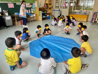 年中もも組は運動会ゆうぎで行うパラバルーンの練習をしていました😊