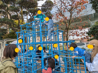 園庭開放では、とても良いお天気の中、沢山のお友だちが遊具やおうちの方と楽しく遊んでいました。