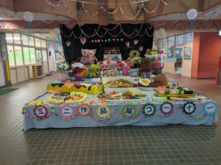 お友だちも足を止めて見ていたり、作品の前でお弁当を食べているクラスもありました‼