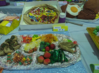 美味しそうなごちそう🍰🍣やかわいい動物が飾られていてホールがとても華やかになっています‼