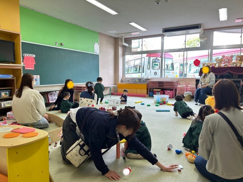 「どんなおもちゃがあるのかな?」と興味深々な様子でした😊これから先生やお友だちと沢山遊びましょうね💕