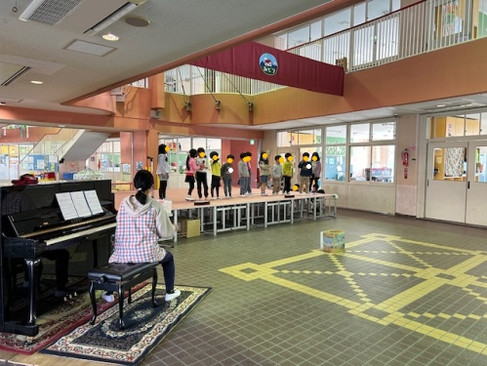 年長たんぽぽ組はステージ練習をホールで行っていました。劇中に楽器が出てくる場面が‥上手にメロディオンを演奏していました🎵