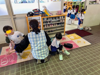 今日は満3歳児クラスの体操教室がありました✨上履き入れを持って体育館から帰ってきました。めろん組のお友だちのお支度や移動の様子です!自分で支度が出来るようになって偉いですね💕