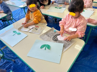 満3歳児クラスめろん組では製作を行っていました😊のりを上手につけてお花の茎を貼っていました。お花の完成が楽しみですね🌟